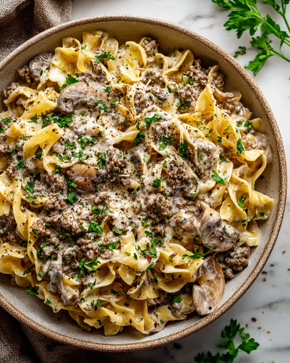 - Once the noodles are cooked, remove the pot from heat. Gently fold in the sour cream, allowing it to meld with the beef mixture into a velvety sauce. Season with salt and pepper to taste.