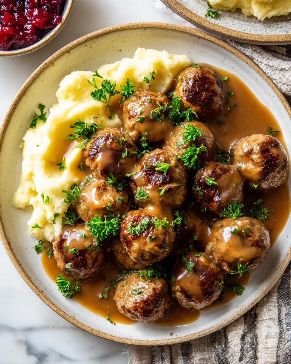 - Return the meatballs to the skillet and simmer in the gravy for an additional 10 minutes.