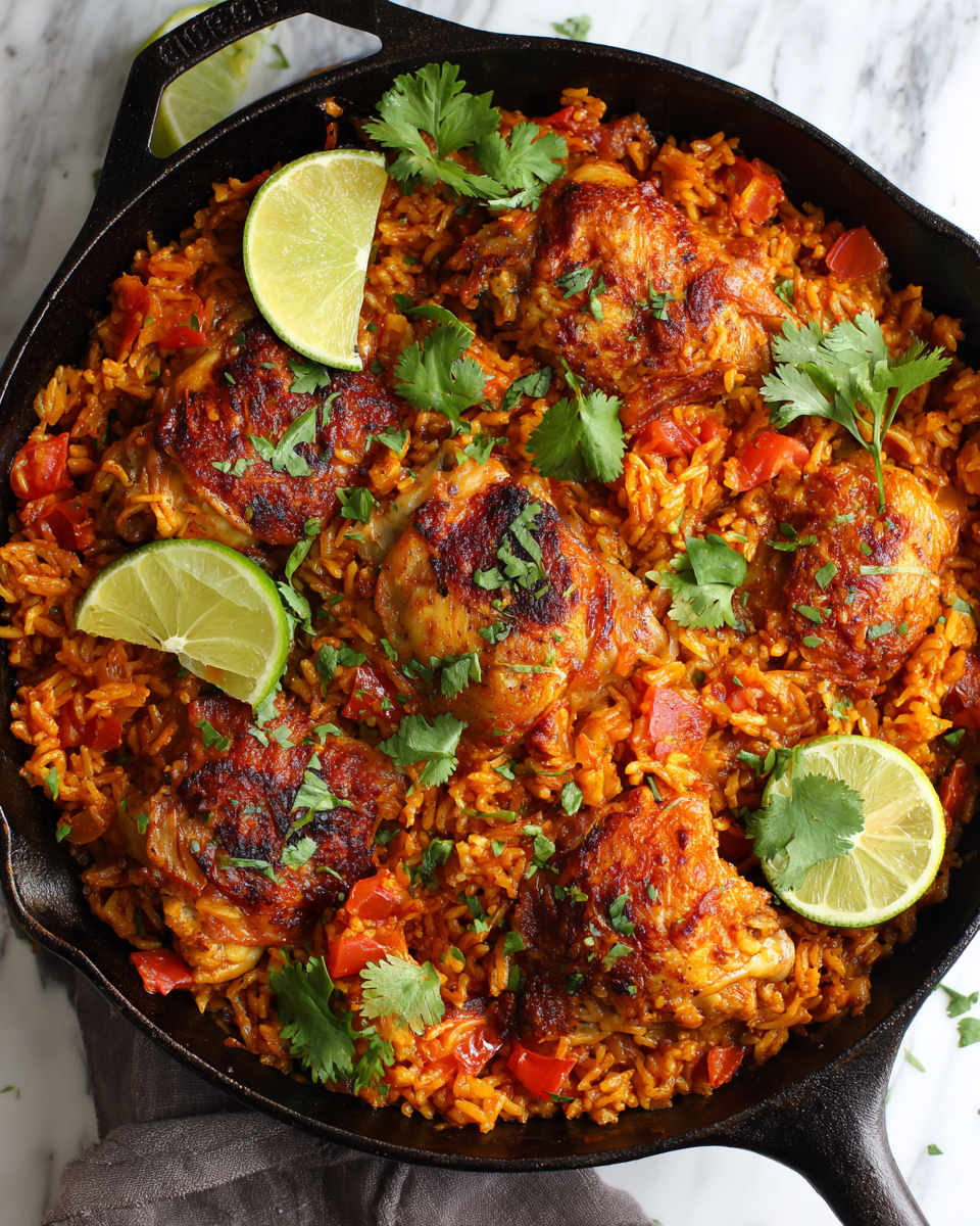 - Nestle chicken thighs back into the skillet and bring to a gentle simmer. Cover and reduce heat to low, cooking for about 20-25 minutes until the rice absorbs the liquid and is tender.